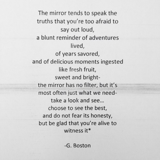 I never really was big on mirrors. Always feeling inadequate in one way or another when the looking glass told my truth.